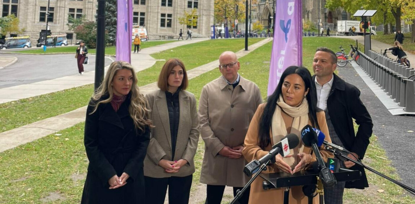La candidate à la mairie de la métropole et cheffe d’Ensemble Montréal, Soraya Martinez Ferrada, a présenté mercredi matin au cœur du centre-ville sa vision économique dans le cadre de sa série de 10 actions en 100 jours.